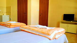 U svakom apartmanu se nalazi ,pored broja kreveta za koji je namenjen,i kompletno opremljena kuhinja sa friziderom ,televizor i klima uredjaj .